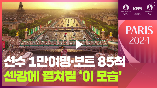 파리올림픽 개막식은 파리의 상징 센강 위에서 펼쳐집니다. 센강의 동쪽에서 서쪽으로 약 6KM를 따라 배를 타고 퍼레이드를 진행합니다. 206개국 10,500명의 대표단 선수들은 각국의 배를 타고 퍼레이드를 진행합니다. 총 85척의 배가 대표팀 선수단을 태우고 퍼레이드를 진행합니다.